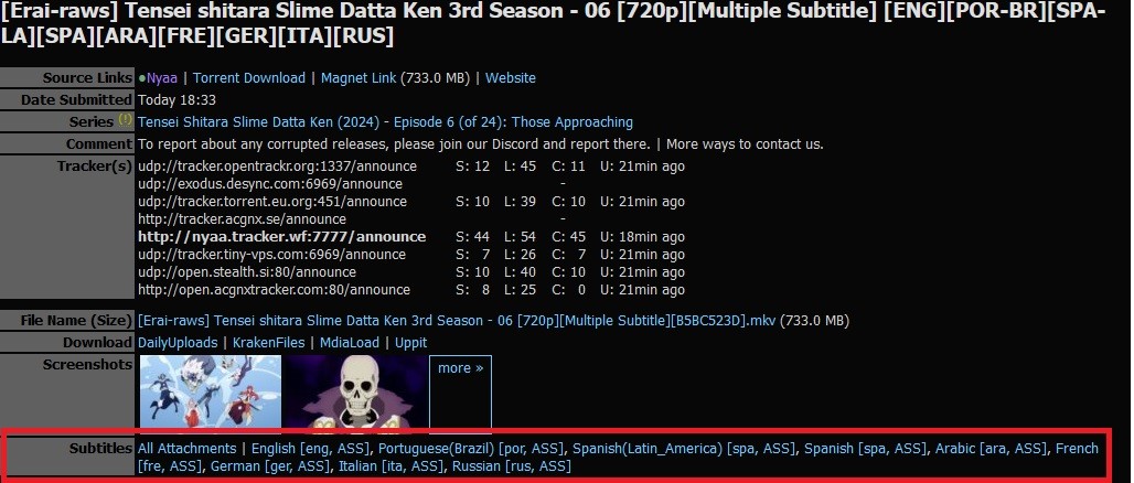 | К выложенным релизам Ераев, могут идти еще и сабы в отдельном архиве. |