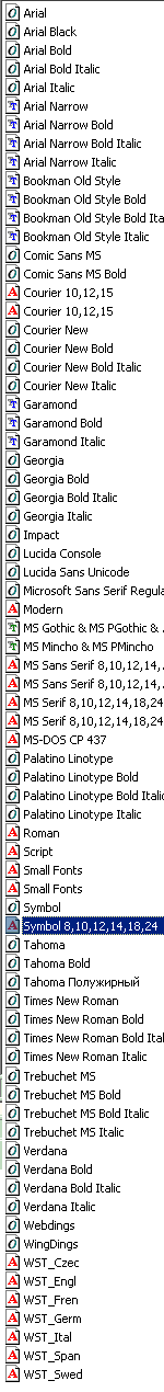 [14.49 KB / Просмотров: 1944] Список шрифтов в системе.