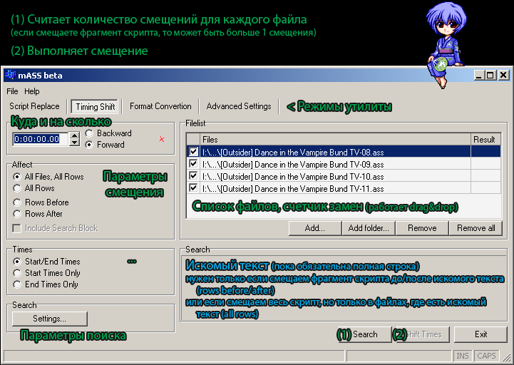 Добавлено: Пн Июл 11, 2011 17:47 pm Заголовок сообщения: mASS beta - программа для групповой обработки субтитров |