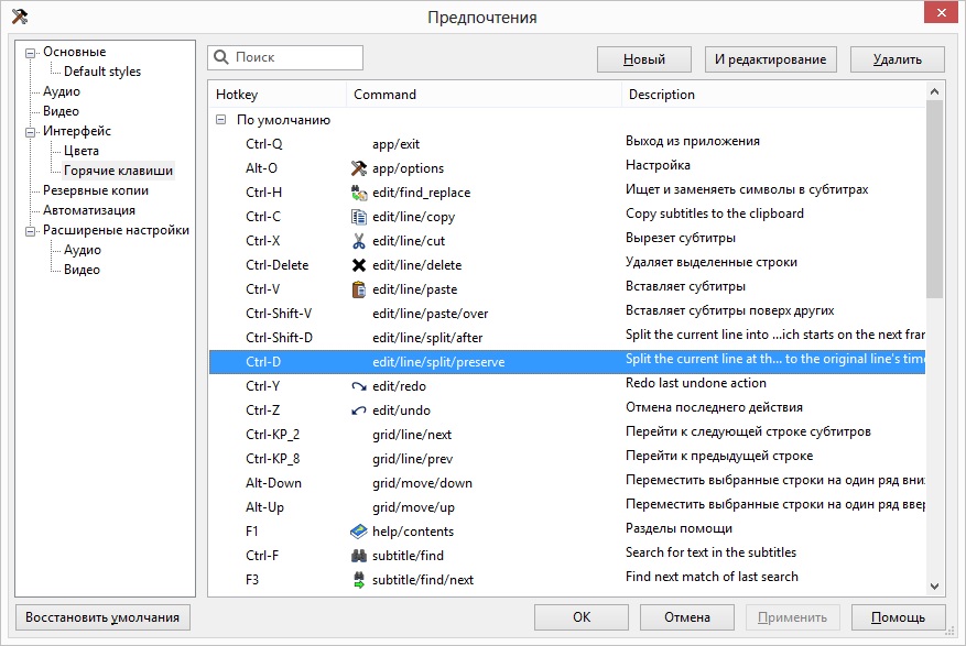 Команда Ctrl + Shift + D копирует активную строку субтитров и создаёт точно такую же, располагая её после текущей активной строки.